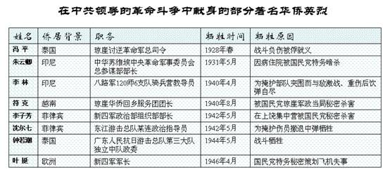 1920年,旅俄华侨杨明斋参加共产国际工作组来到北京、上海和济南等地,协助建立中国共产党。从那时起,就有数以千计的海外华侨毅然回国参加中国共产党领导的革命斗争。其中有的在对敌斗争中英勇牺牲了,有的成长为新中国党政军各方面的领导干部。