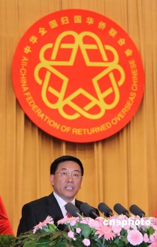 7月14日,中国侨联主席林军在北京人民大会堂举行的第八次全国归侨侨眷代表大会上,作《高举中国特色社会主义伟大旗帜,团结动员归侨侨眷和海外侨胞、为夺取全国建设小康社会新胜利而奋斗》的工作报告。 中新社发 史利 摄