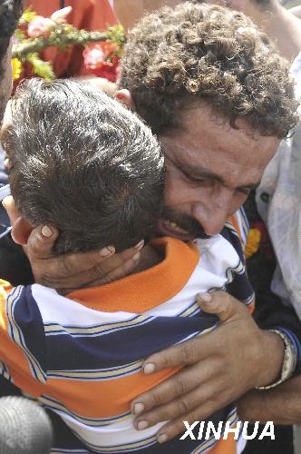 8月23日,在埃及苏伊士附近的阿塔卡港,一名被索马里海盗绑架的埃及渔民与孩子拥抱。当天,被索马里海盗绑架了4个月的33名埃及渔民顺利返回埃及,另有8名被俘的索马里海盗同船抵达。新华社发