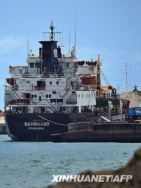 9月25日,一艘悬挂巴拿马国旗的商船停靠在索马里首都摩加迪沙的港口。索马里官员说,索马里海盗24日登上这艘悬挂巴拿马国旗、驶往索马里首都摩加迪沙的商船,海盗们要求叙利亚籍船长把船驶离港口方向,遭到拒绝。海盗于是将船长残忍杀害。新华社/法新