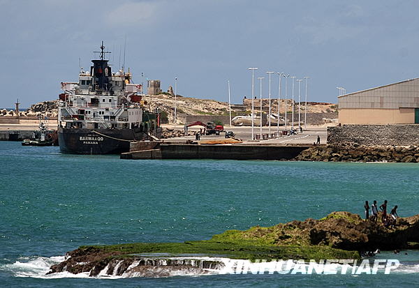 9月25日,一艘悬挂巴拿马国旗的商船停靠在索马里首都摩加迪沙的港口。新华社/法新