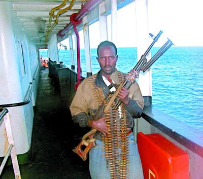 索马里海盗去年从骑劫船只索得约4000万美元赎金。去年8月时,海面相对平静,那是海盗“丰收期”,巨无霸如沙地阿拉伯的运油船也被骑劫。