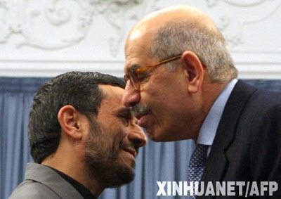 【资料图片】1月12日,伊朗总统艾哈迈迪-内贾德(左)在首都德黑兰与到访的国际原子能机构总干事巴拉迪会谈前相互致意。巴拉迪11日率代表团抵达德黑兰对伊朗进行为期两天的访问,这是他自2006年4月以来首次访伊。巴拉迪呼吁伊朗当局在核问题上“加速”同该机构的合作步伐,同时希望伊朗的核活动“更加透明”。新华社/法新