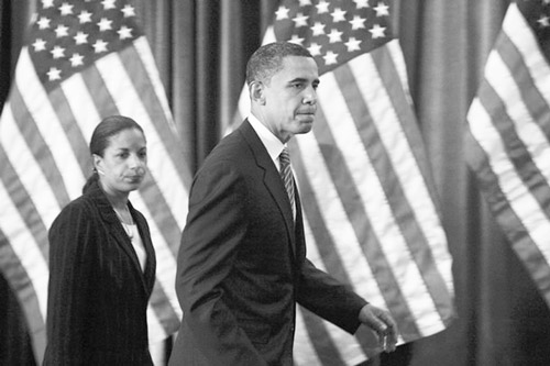 苏珊·赖斯(左)是奥巴马竞选时的重要外交智囊。她属于奥巴马身边的“华府帮”