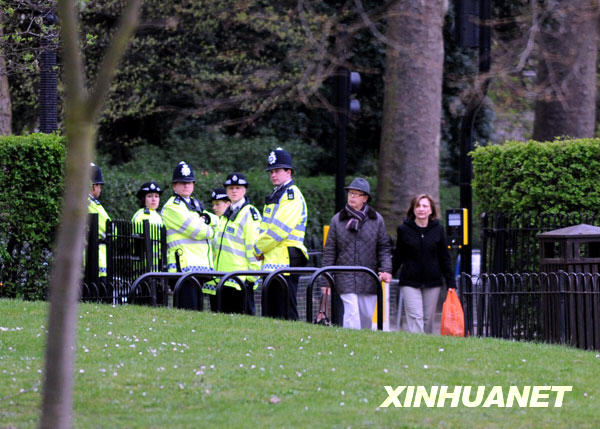 3月31日,在英国首都伦敦,安全人员在毗邻温菲尔德庄园的摄政公园内执勤。美国总统奥巴马将于当地时间3月31日晚间抵达伦敦,并下榻美国驻英大使官邸温菲尔德庄园。新华社记者曾毅摄